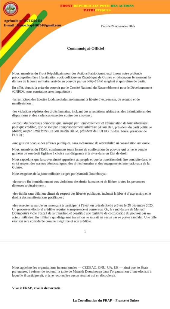 Communiqué du Front Républicain pour des Actions Patriotiques (FRAP)